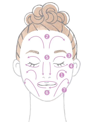 血流の流れに沿って乾燥しやすい頬の広い部分からなじませます