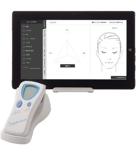 全国のアユーラコーナーでは肌測定器による肌状態の確認と問診によって最適なお手入れを見つけるお手伝いをしています。お気軽にお立ち寄りください。
